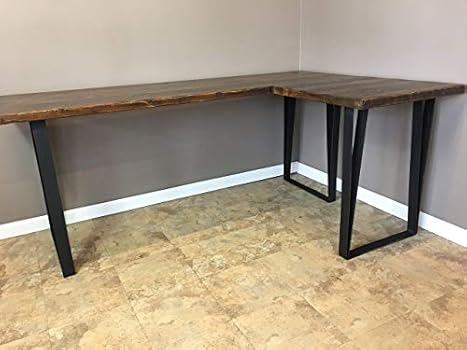 Amazon Com Desk Wood L Shaped Office Desk Reclaimed Wood And Custom U Shape Legs Desk Choose From Size And Finish Handmade Products